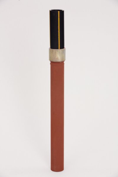 Přechodový spoj ocel/PE 100, PE 100-RC - zemní provedení ( zemní přechodka-prodloužená) je dílensky vyrobený nerozebiratelný spoj určený k vzájemnému spojení kovové a plastové části potrubí tlakového rozvodu topných plynů (zemní plyn,svítiplyn, plynná fáze propanu, vodík) s maximálním pracovním přetlakem 0,4 MPa. Uvedené výrobky odpovídají ČSN EN 1555-3.